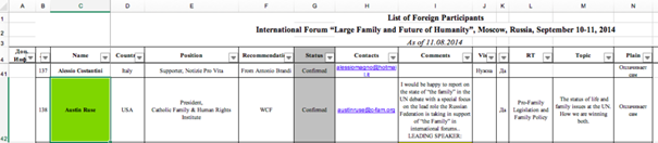 The list of confirmed guests is available through this link. According to the portal BuzzFeed News, the list shows that “Russian nationalists and social conservatives appear to be working together to use links with ‘pro-family’ organizations in the U.S. and around the world to promote Russia's geopolitical agenda […]” .