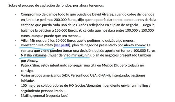 These documents published in summer of 2021 by Wikileaks include agreements, transfers, invitations, letters, strategic plans, and memos which shed new light on the entire conservative international's relationship with Putin's Russia. The light is all the stronger because the head of CitizenGo, the Spaniard Ignacio Arsuaga, confirmed the authenticity of the stolen documents published by Wikileaks . They include an agreement between CitizenGo and the St. Basil the Great Foundation run by Malofeev for €100,000