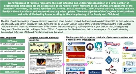 - uses the World Congress of Families to infiltrate extremely conservative circles worldwide;