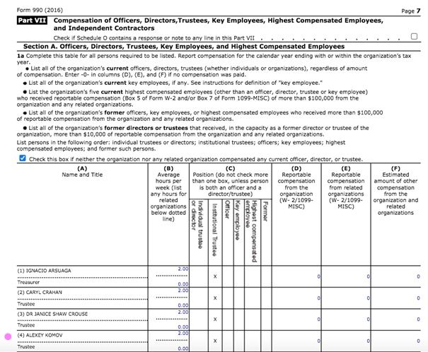 Here is a scan from the Howard Center’s 2016 tax returns, with a list of directors and advisors. It shows that Mr. Komov spends two hours a week working for the WCF