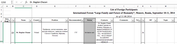 Lista potwierdzonych gości znajduje się pod linkiem. Według portalu BuzzFeed.News lista pokazuje, że „rosyjscy nacjonaliści i konserwatyści zdają się współpracować, używając swych związków z ‘prorodzinnymi’ organizacjami w USA i na całym świecie do promocji rosyjskich celów geopolitycznych (…)”.