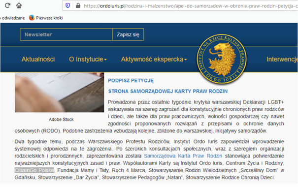 Ordo Iuris chętnie korzysta z platformy petycyjnej CitizenGo – patrz tu. Na załączonym poniżej skanie widać początek spisu licznych petycji, które Ordo Iuris wystosowało przy pomocy CitizenGo. Obecnie liczba tych petycji urosła do 13.
