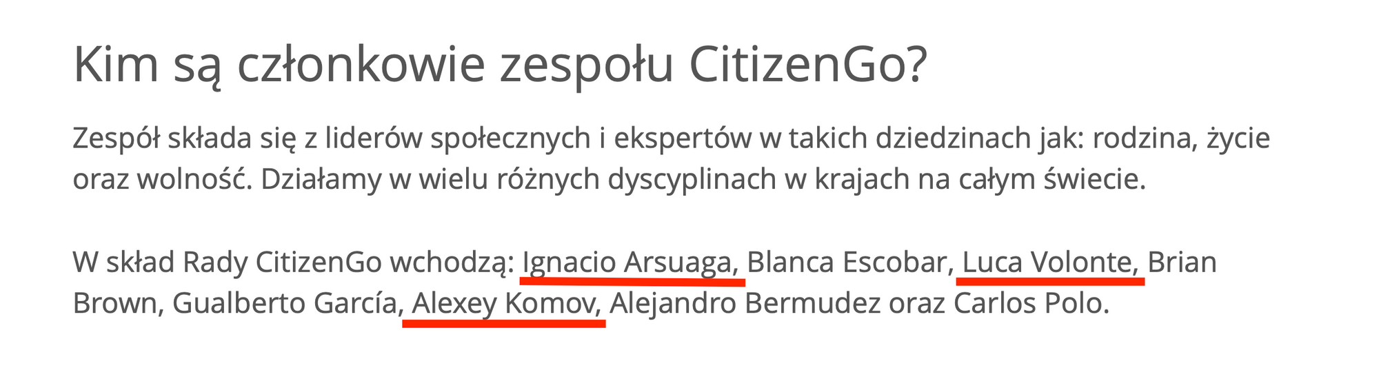 Spójrzmy, kto nadzoruje CitizenGo, drugą z organizacji Ignacio Arsuagi. Na liście członków Rady CitizenGo widać znane nam już nazwisko . To Aleksiej Komow.