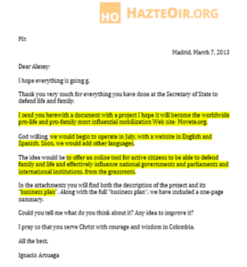 Ignacio Arsuaga przewodzi hiszpańskiej organizacji Hazte Oír, podobnej w charakterze do fundacji Ordo Iuris i powiązanej z nią drugiej fundacji Pro – Prawo do życia.